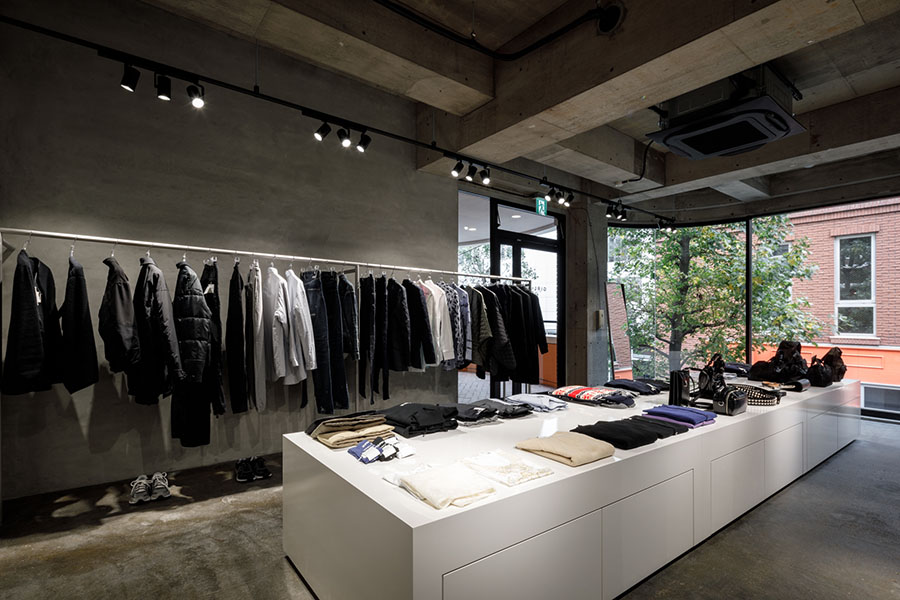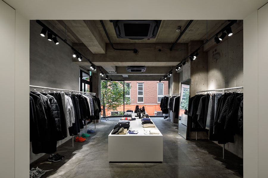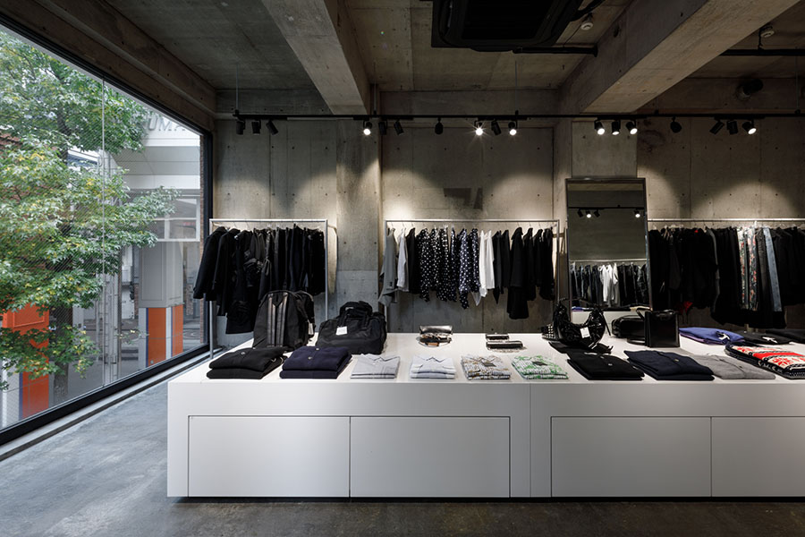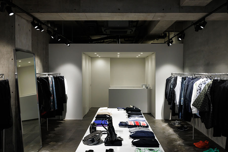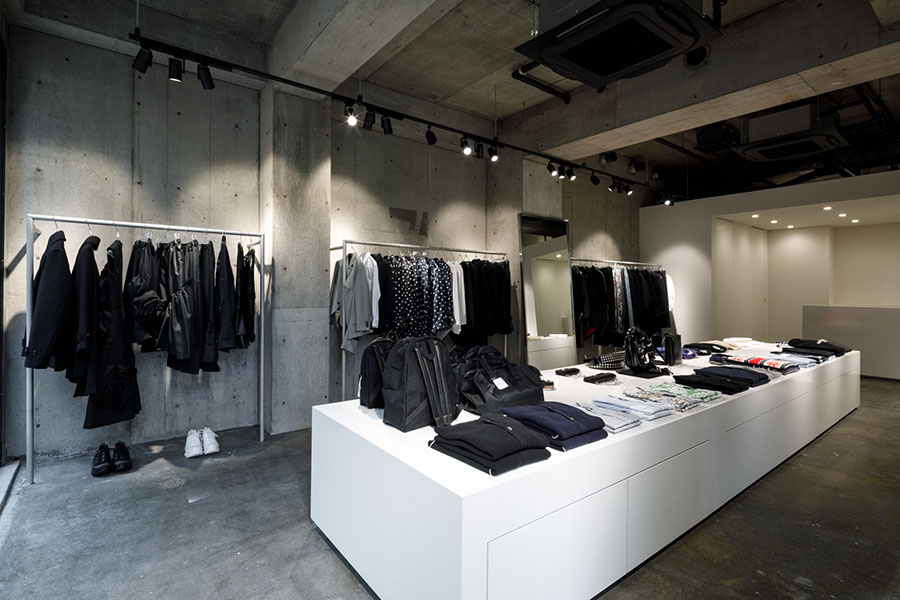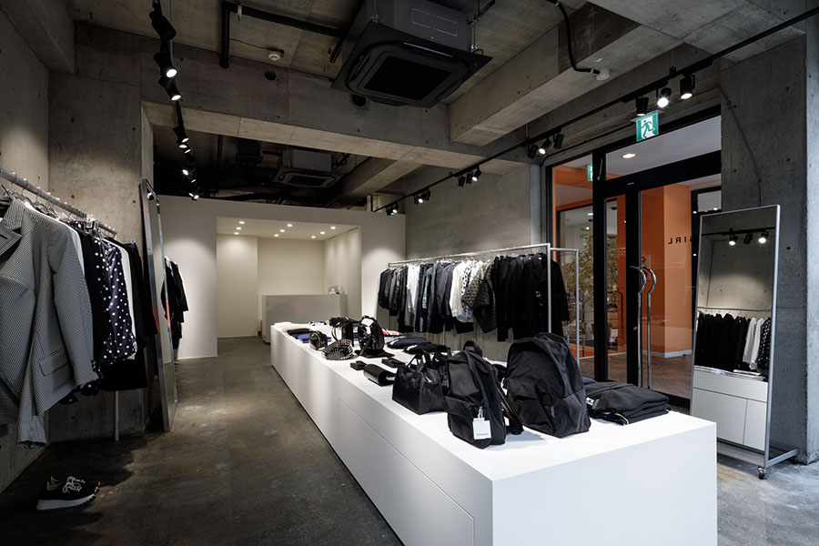 コムデギャルソンブランドを扱うセレクトショップ。 より商品を見ていただけるように色のトーンを白とグレーに統一。 オリジナルで製作した什器は動線やディスプレイを考えシンプル計画。 照明計画はスポットライトを採用し明暗を使い分けた空間になっている。